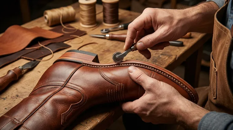El término "rueda personalizada" se refiere a la herramienta y la técnica utilizadas para aplicar las puntadas al ribete. Es un sello distintivo de la fabricación de botas de alta gama que ofrece ventajas tangibles.