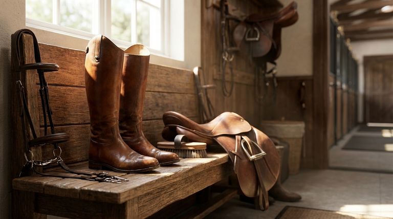 Las botas altas de cuero están diseñadas para montar, no para tareas. Generalmente no son adecuadas para el trabajo en la cuadra, como la limpieza, ya que la humedad y la suciedad pueden degradar rápidamente el cuero.