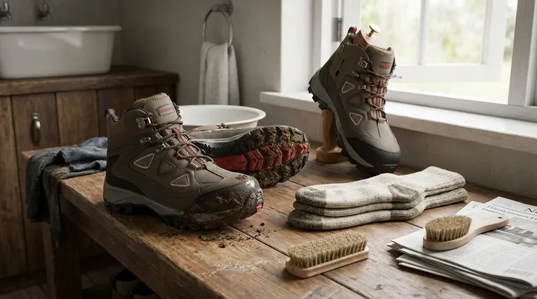 Permitir que el barro y la mugre permanezcan en sus botas durante la noche es un error común. Esta acumulación puede extraer los aceites esenciales del cuero, haciendo que se vuelva quebradizo, y puede desgastar lentamente los materiales sintéticos.