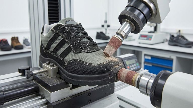 Probar el material de la suela con una herramienta de abrasión mide la rapidez con la que se desgastará el caucho. Esto se correlaciona directamente con la vida útil general del zapato y su capacidad para proporcionar una tracción constante a lo largo del tiempo.