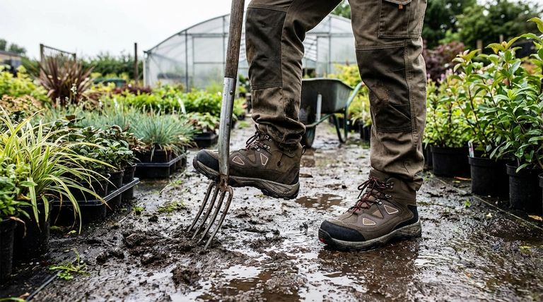 Esto es esencial cuando se trabaja en agua estancada, después de lluvias intensas o en suelos consistentemente fangosos. Tareas como el riego extensivo o el trabajo en montones de compost embarrados se vuelven mucho más manejables.