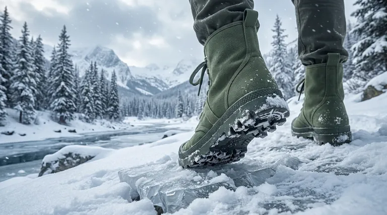 En esencia, las suelas de goma son beneficiosas en las botas para clima frío por dos razones principales: crean una barrera impermeable que mantiene los pies secos y sus propiedades materiales inherentes proporcionan una tracción superior en superficies traicioneras y resbaladizas como el hielo y la nieve. Estas dos funciones son críticas tanto para la comodidad como para la seguridad en condiciones invernales.