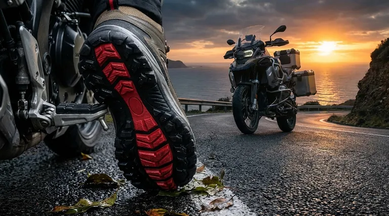 La suela es mucho más que una simple capa de goma; es un componente diseñado directamente responsable de su conexión con la motocicleta y la carretera.